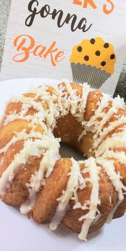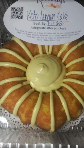 Ingredients: Almond flour, Monk fruit, Xanthan gum, eggs, coconut oil or butter, cream cheese or without, vanilla extract, baking powder, and salt. Available with or without frosting or glaze.